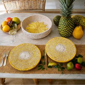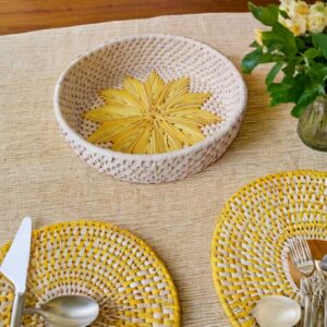 This charming handwoven palm leaves basket stands 3 inches tall and boasts a generous 10-inch diameter, making it a versatile addition to your home decor. Crafted by skilled artisans, the basket showcases intricate weaving techniques that highlight the natural texture and warmth of palm leaves. Its lightweight yet durable design makes it perfect for storing small items, serving as a decorative accent, or organizing essentials around the house. Whether used in the living room, bedroom, or bathroom, this basket brings an organic touch to any space.